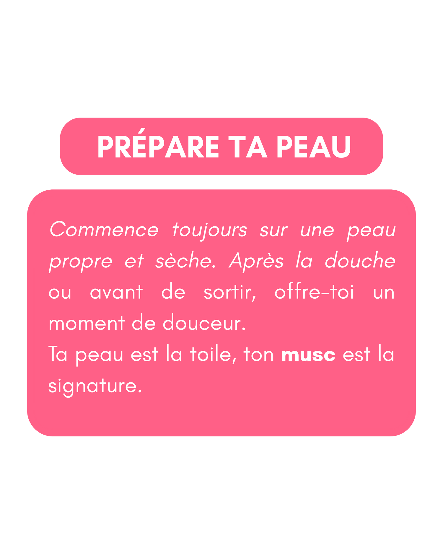 Musc Beauty, c’est plus qu’un produit : c’est une pause. Un moment pour toi, pour ralentir, te recentrer, t’envelopper de douceur. À chaque application, tu déposes un peu de calme sur ta peau.